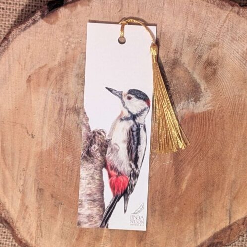 A perfect gift for book lovers this bookmark features the Great Spotted Woodpecker design which I drew using a reference photograph by kind permission of Sue Cross Wildlife Photography