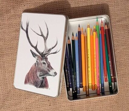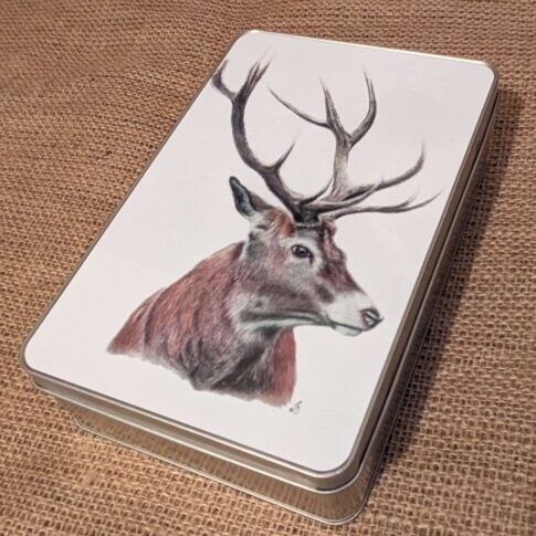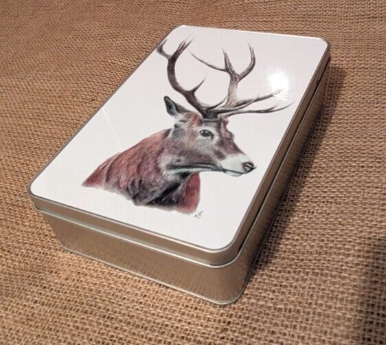 These metal tins make a personal gift when filled with treats or to hold trinkets. Featuring my Red Deer Stag design